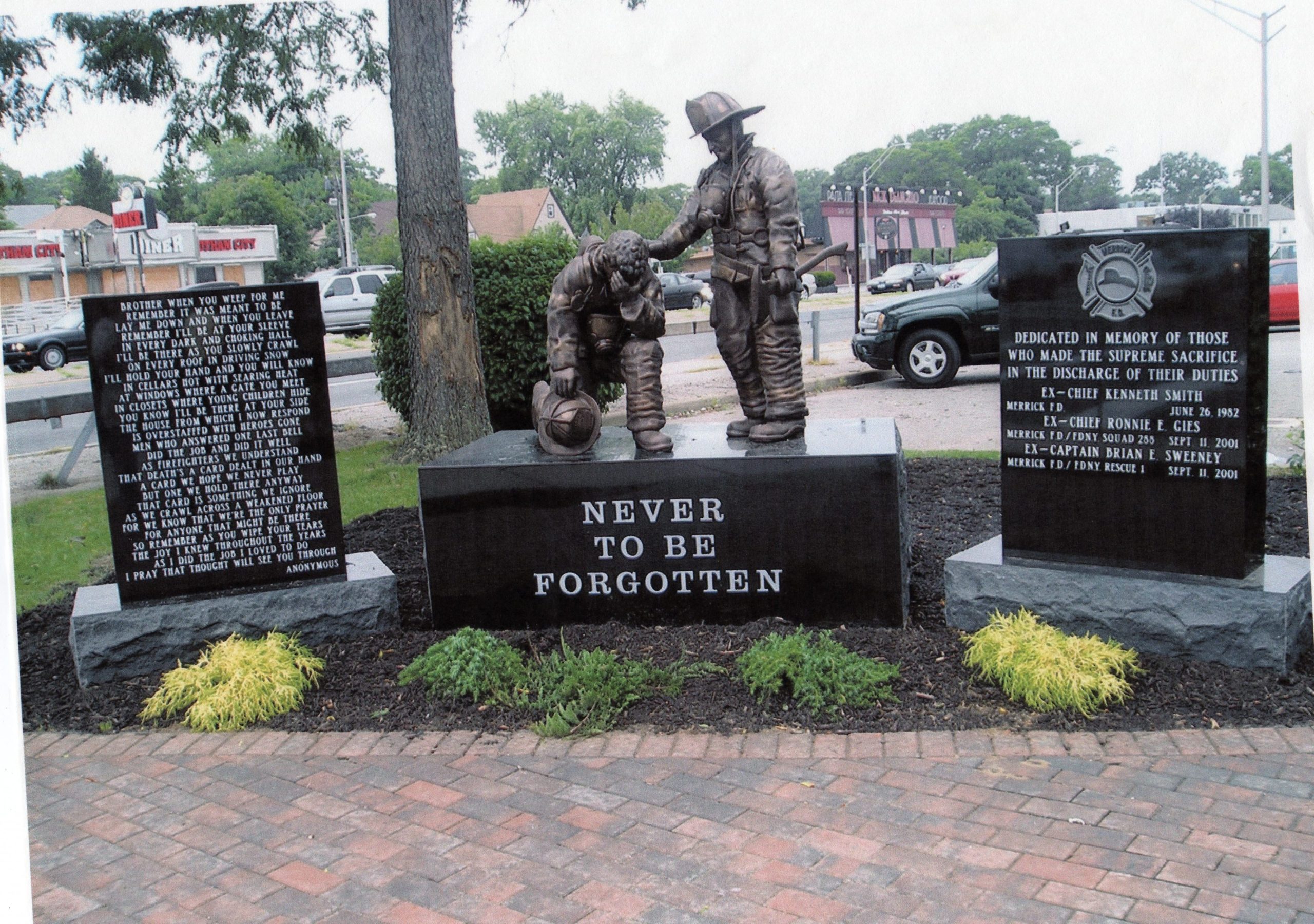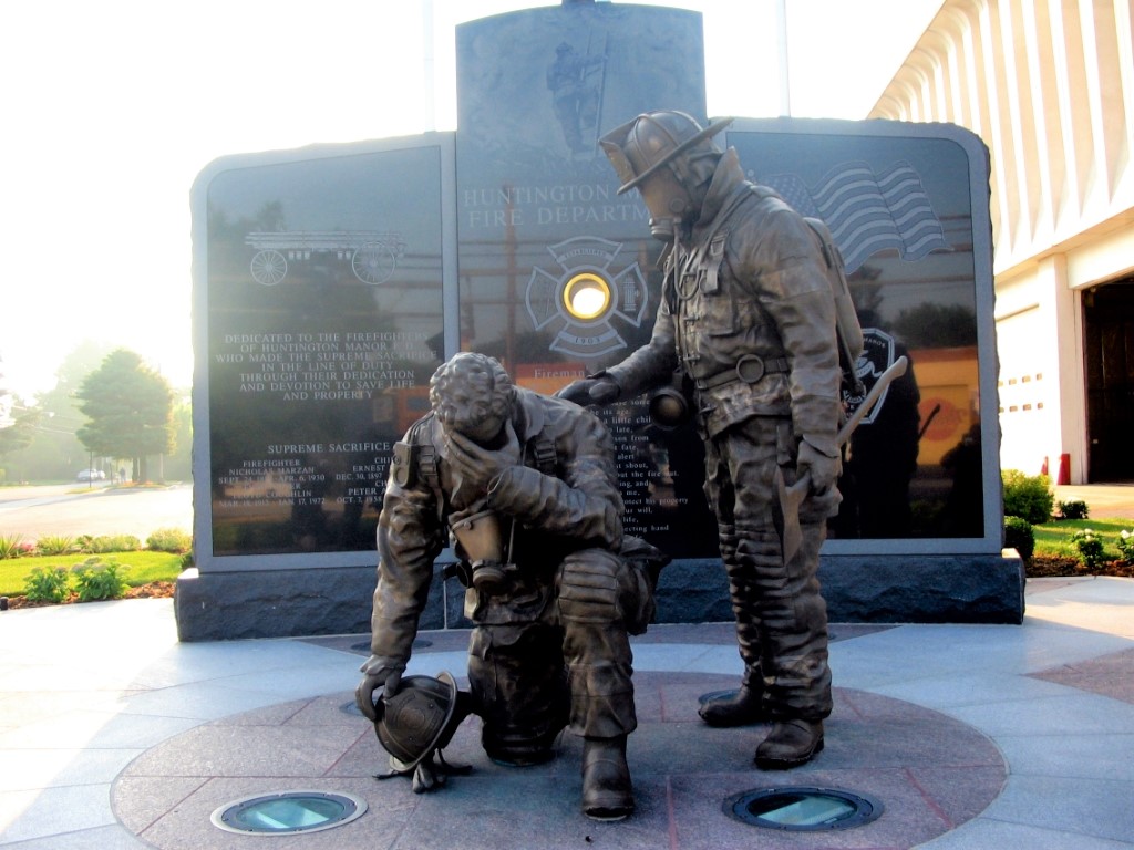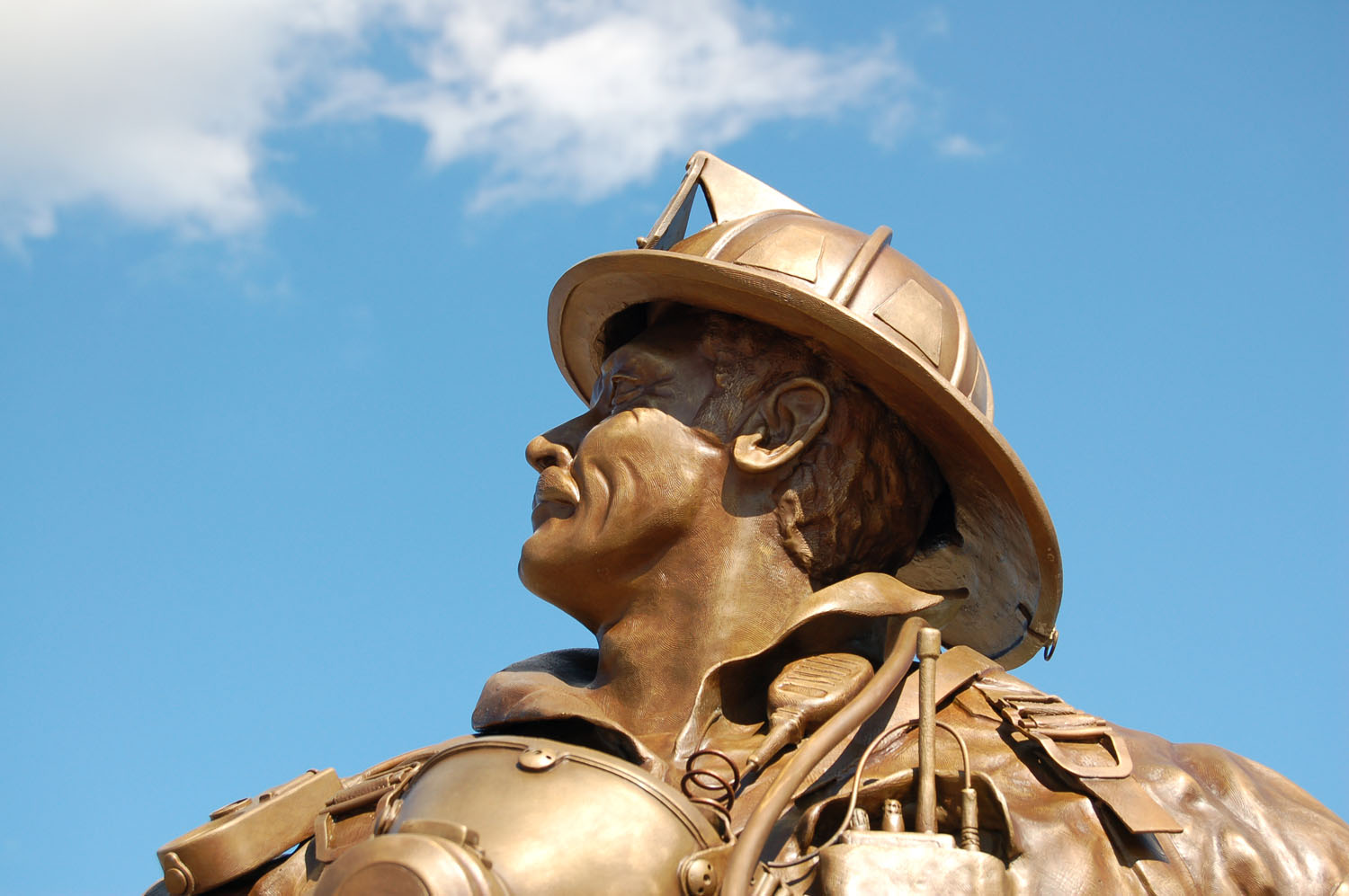 Our Double Firefighter Call to Duty© is the image of a firefighter kneeling to honor and memorialize those that made the ultimate sacrifice with a second firefighter showing him support and shared loss. Each statue is completely custom to your department. It will be sculpted with your uniform, patches, equipment, and gear. The equipment and gear will be the same makes and models of the items used by your department. For example the same style of helmet or the same make and model of air pack that is worn by your department. You have the choice of sex, race, and age for both statues.