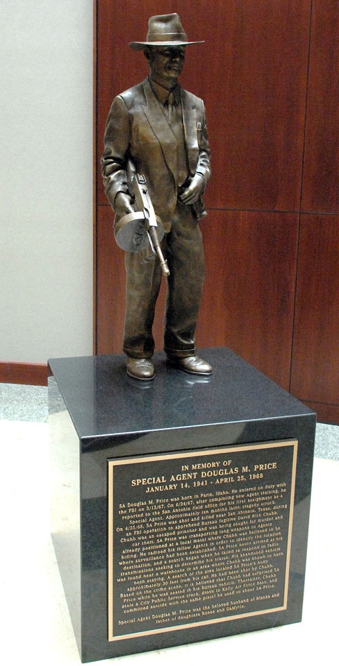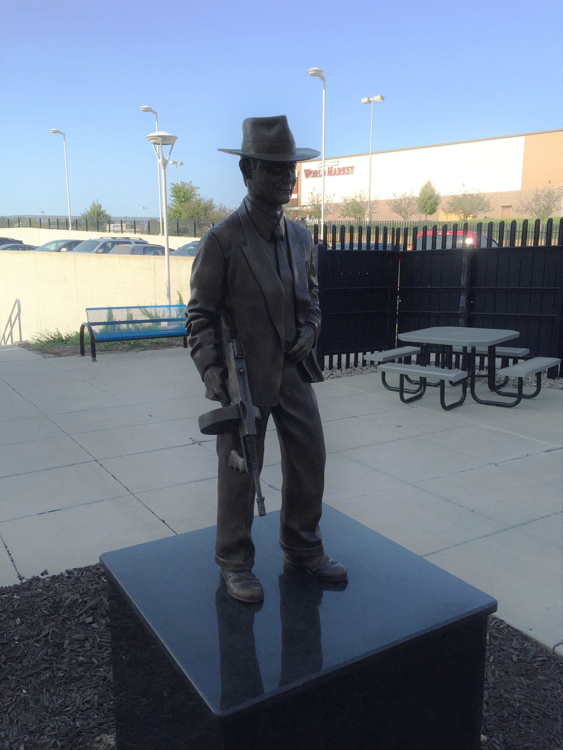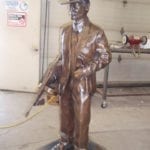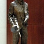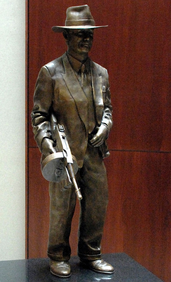 The FBI G-Man statue is dressed in the 1930’s investigator suit with the FBI armband, Fedora, and a Thompson sub-machine gun. Life-size is approximately 72″ and 2/3 life-size is approximately 48″. Miniature replicas of the G-Man are available.