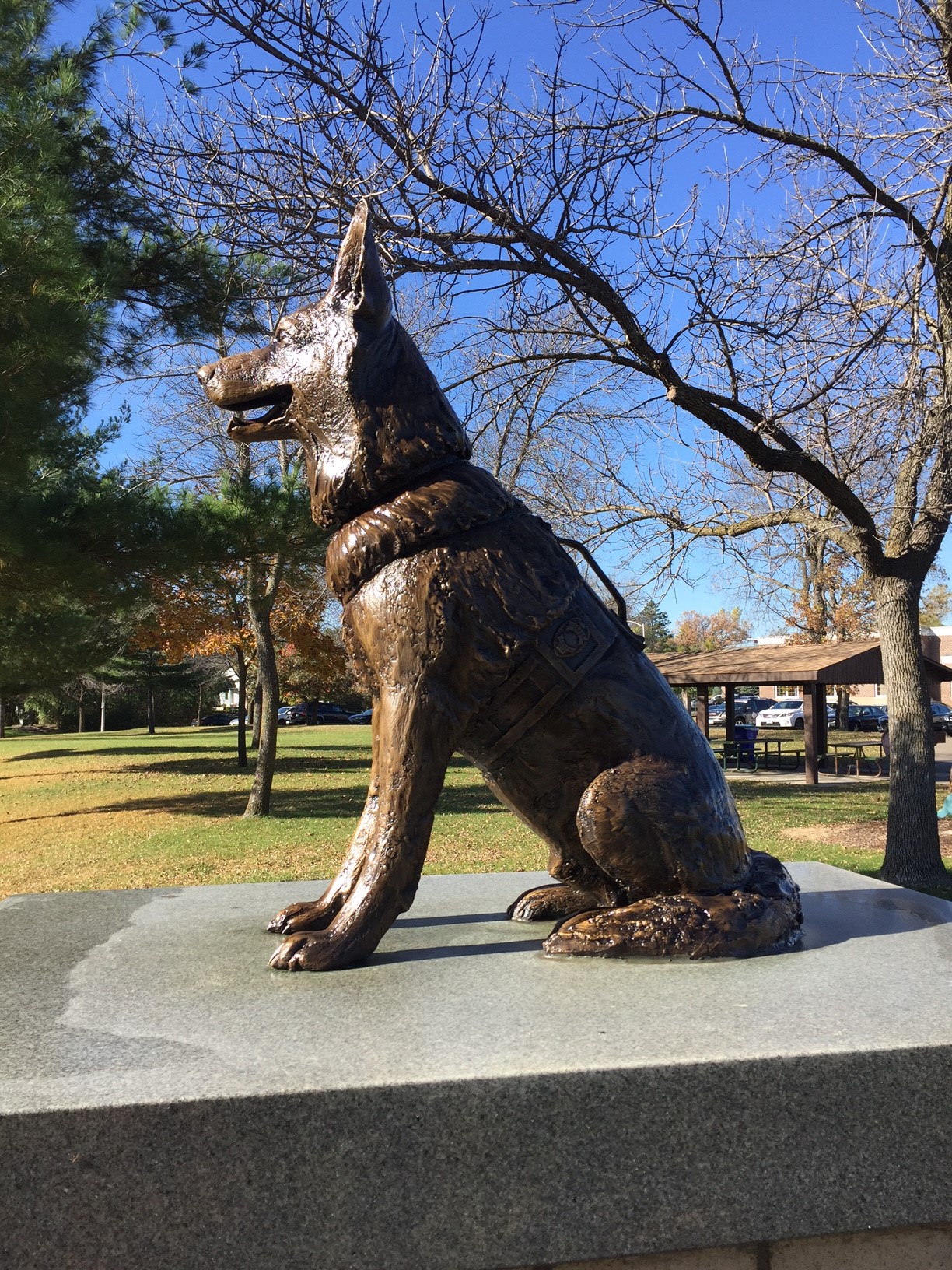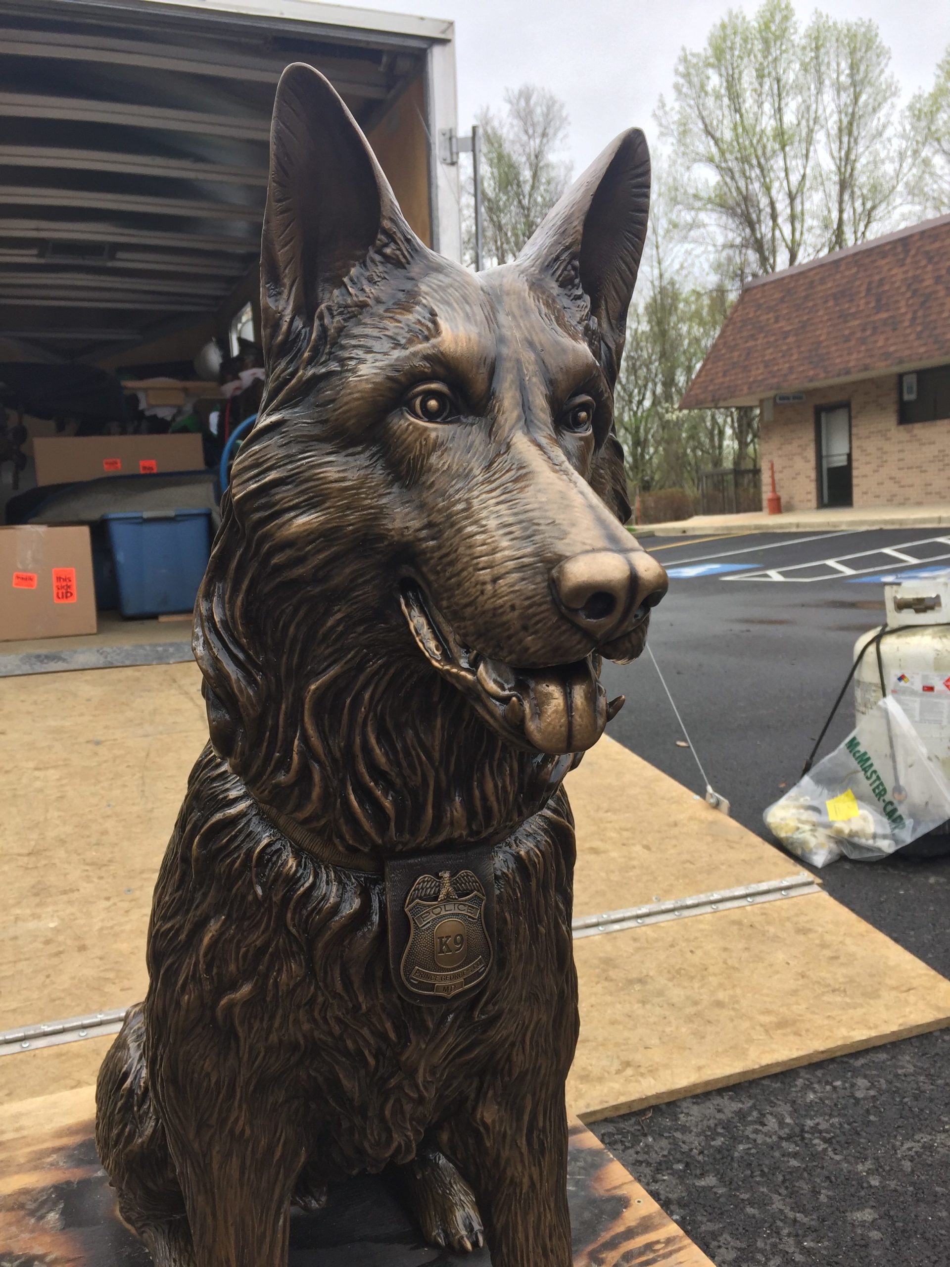 Our bronze K-9 statues are available in life-size or 2/3 life-size. They can be customized with the K-9 badge, collar, harness, and/or vest. We have German Shepherds, Labradors, and Malinois. Other breeds and sizes can be created. Call for a QuoteOther Monuments and Memorials ProductsLaw Enforcement Fire Military Custom