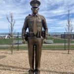 A single officer figure sculpted stands between 6′ 2″ and 6′ 4″ with his hat in place for life-size and between 4′ and 4’2″ for 2/3 life-size. Each statue is completely custom to your department. It will be sculpted with your uniform, patches, badges, equipment, and gear. The equipment and gear will be the same makes and models of the items used by your department. For example the basket weave on the leather belt or the model of radio will be the same worn by your department. You have the choice of sex, race, and age of the statue.